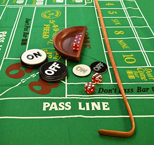 CRAPS STARTER KIT 42" DICE STICK FELT DICE BOAT ON/OFF PUCK 5 REAL CASINO DICE