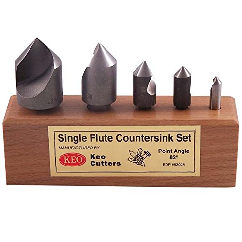 KEO 50059 Cobalt Steel Single-End Countersink Set, Uncoated (Bright) Finish, Single Flute, 90 Degree Angle, 1/4" - 1" Body Diameter