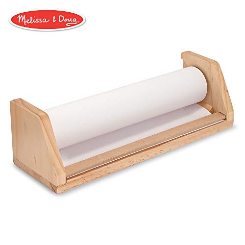 Melissa & Doug Wooden Tabletop Paper Roll Dispenser, Arts & Crafts, Child-Safe Tear Strip, Premium-Weight White Bond Paper, Fits 12” Easel Paper Roll, 4" H x 13.5" W x 4.375" L