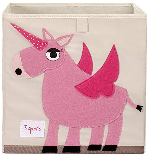 3 Sprouts Organizer Container Cube Storage Box for Kids & Toddlers, Unicorn
