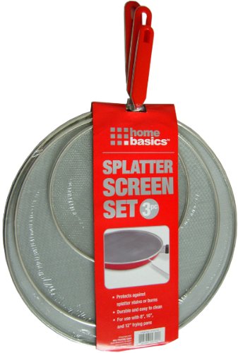 Home Basics Splatter Screen Set, 3 Pieces - 8", 10" & 12" Screen (Assorted Handle Color)