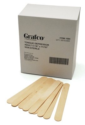 Grafco 1584 Tongue Depressor, Non-Sterile, Standard Size, 5-7/8" x 11/16", Box of 500 (Pack of 500)