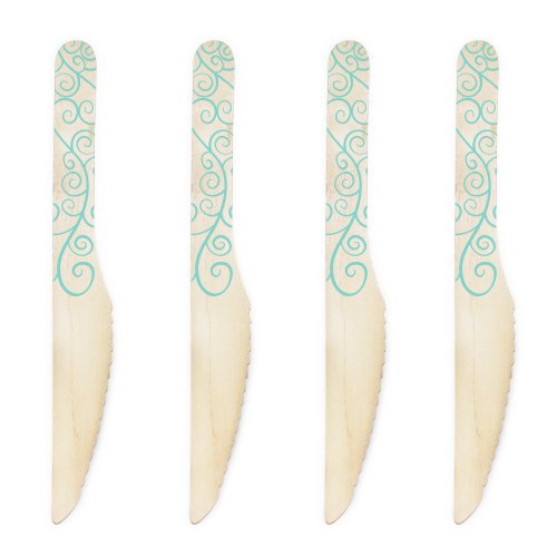 Dress My Cupcake 6.5-Inch Natural Wood Dessert Table Knives, Tiffany Blue Filigree, Pack of 50