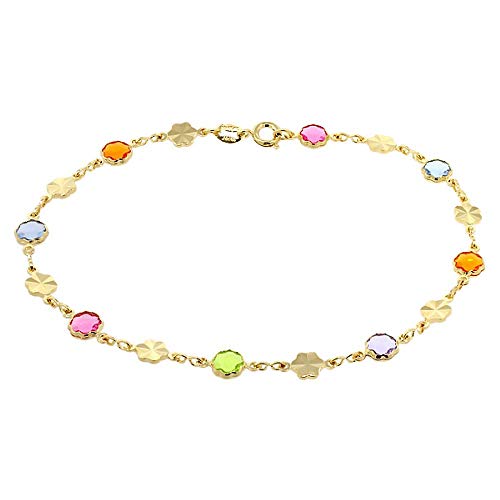 Gem Stone King 7inches Multi-Color Flower Shape Crystal Yellow Gold Plated Brass Bracelet