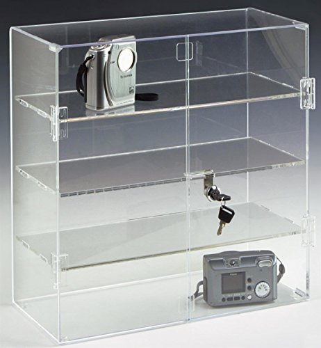Retail Countertop Display Case, 16-1/2 x 16-1/4 x 7 Inch, Clear Acrylic with Three Shelves and Locking Hinged Doors