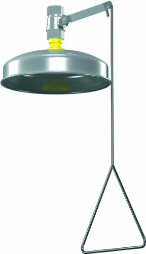 Bradley S19-130A Galvanized Steel 1 Spray Head Vertical Supply Drench Shower with Stainless Steel Showerhead, Ceiling Mount, 20 GPM Water Flow, 9" Width x 25-1/2" Height