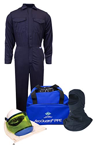 National Safety Apparel KIT2CV11NGBLG ArcGuard HRC 2 Arc Flash Kit with 12 Cal/sq cm Ultra Soft Coverall and Balaclava Knit Hood, Large, Navy