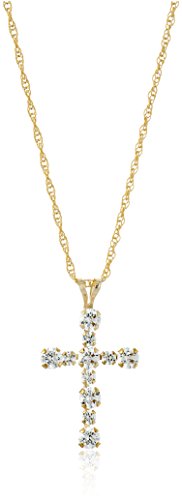 Jewelili 10K Yellow Gold Cross Pendant Necklace Set with Swarovski Zirconia (.5 cttw), 18"