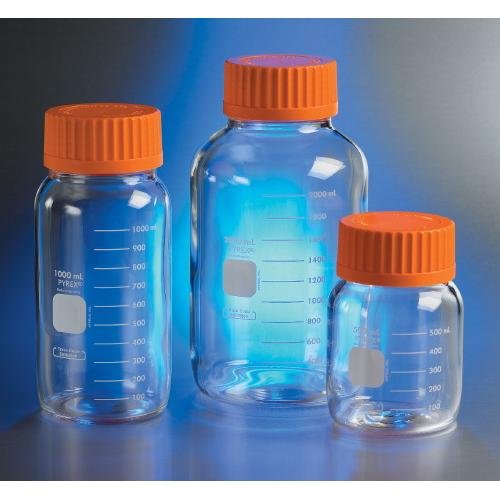 Pyrex Borosilicate Glass Cylindrical Wide Mouth Media Storage Bottle with GLS80 Screw Cap, 500ml Capacity (Case of 10)