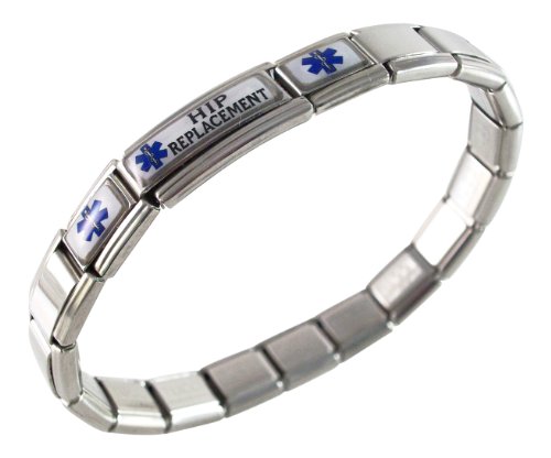 Gadow Jewelry Hip Replacement Medical Alert ID Bracelet for Men or Women Italian Charm Style Stretchable Adjustable Awareness Stainless Steel