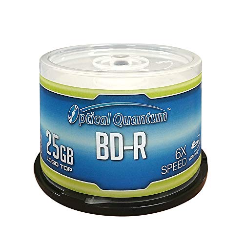 Optical Quantum OQBDR06LT-50 6X 25GB BD-R Single Layer Blu-Ray Recordable Blank Media Logo Top, 50-Disc Spindle