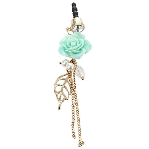 TOOGOO(R) Earphone Jack Accessory Gold Plated Blue Flower Golden Leaves Tassel Chain Beads Crystal Pearls / Dust Plug / Ear Jack For For Iphone 4 4S / iPad / iPod Touch / Other 3.5mm Ear Jack