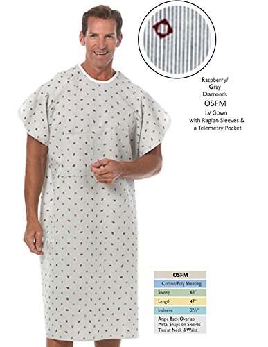 Nobles Health Care Raspberry With Gray Diamond Print IV Angle Back Hospital Gown Pack 4