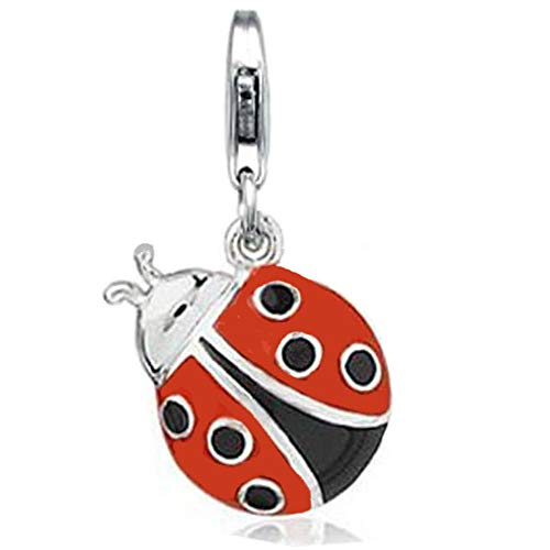 Jovana Sterling Silver Links Charm Ladybug Black and Red Enamel with Lobster Clasp