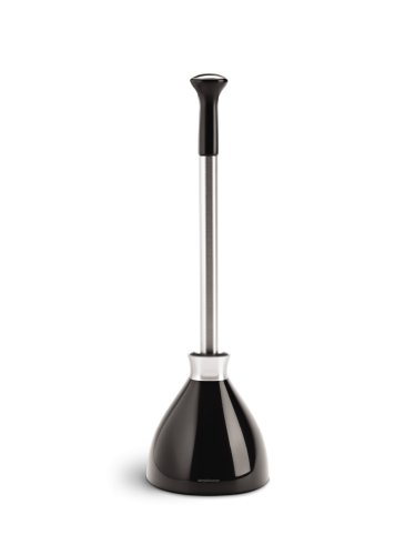 simplehuman Toilet Plunger with Holder, Stainless Steel, Black