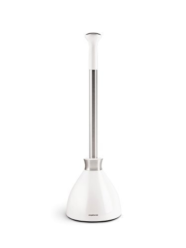 simplehuman Toilet Plunger and Caddy, Stainless Steel, White
