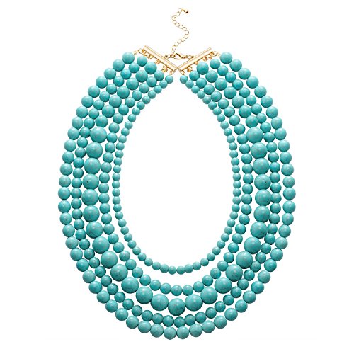 JANE STONE Long Turquoise Color Stone Necklace, Statement Bluish Green Necklace (Fn0506)