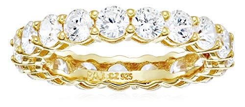 Plated Sterling Silver Round Cubic Zirconia Eternity Band Ring (3.5 mm)