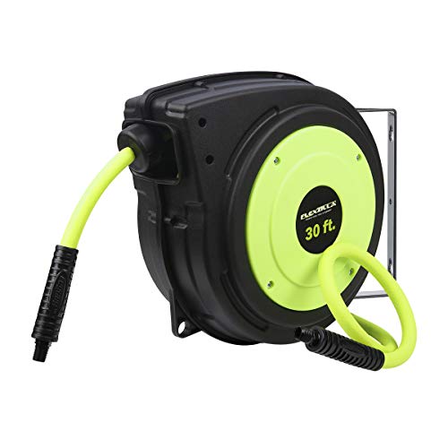 Flexzilla Retractable Enclosed Plastic Air Hose Reel, 3/8 in. x 30 ft, Heavy Duty, Lightweight, Hybrid, ZillaGreen - L8230FZ