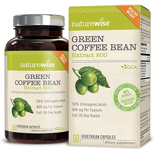 NatureWise Green Coffee Bean 800mg Max Potency Extract 50% Chlorogenic Acids | Raw Green Coffee Antioxidant Supplement & Metabolism Booster for Weight Loss | Non-GMO, Vegan, Gluten-Free [1 Month]
