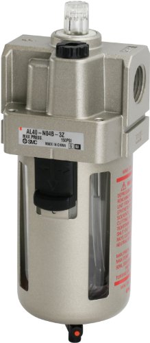 SMC AL40-N04-3Z Lubricator, Polycarbonate Bowl with Drain Cock, 135 mL Oil Capacity, 50 L/min Dripping Flow Rate, 1/2" NPT