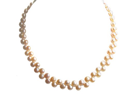7-7.5mm Two Row Pink Genuine Freshwater Cultured Half Round Pearl Wired Choker Necklaces 15" nk70-p