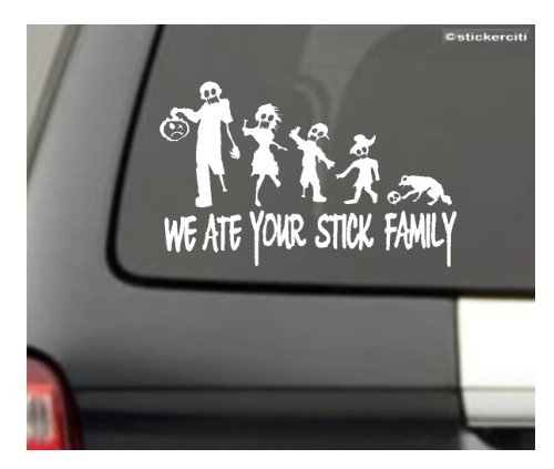 BERRYZILLA WE ATE Your Stick Family Decal Zombies Window Funny Vinyl Decal (Come with Zombie Hunter Permit Decal)