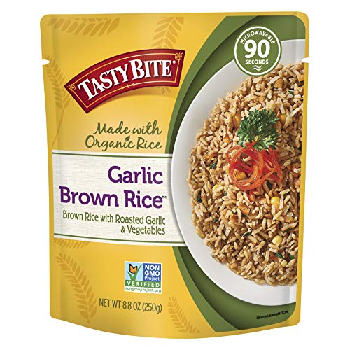 Tasty Bite Brown Rice Garlic 8.8 Ounce (Pack of 6), Whole Grain Garlic Brown Rice, Fully Cooked, Ready to Serve, Microwaveable, Vegan Gluten-Free No Preservatives