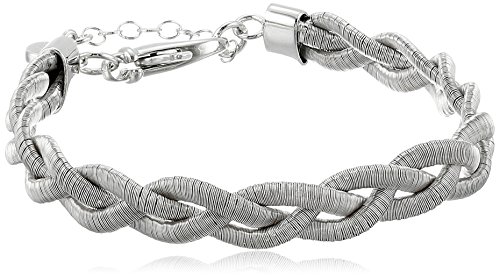 Italian Sterling Silver Rhodium Plated Braided Bracelet, 7.25" + 1" Extender