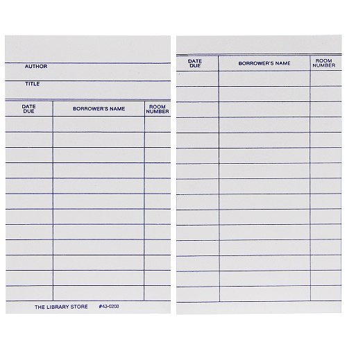 Book Cards White 3 Column with Date Due and Room Number - Medium Weight 100/pkg