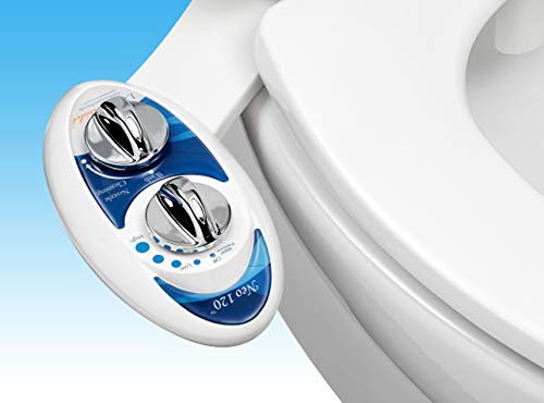 Luxe Bidet Neo 120 - Self Cleaning Nozzle - Fresh Water Non-Electric Mechanical Bidet Toilet Attachment (blue and white)