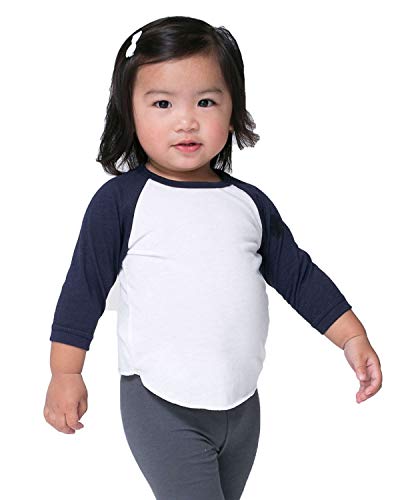 American Apparel Infant Poly-Cotton 3/4 Sleeve Raglan - White/Navy / 6-12M