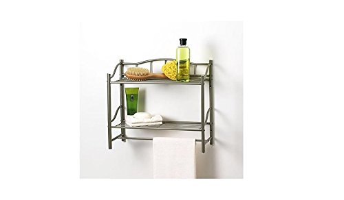 Bathroom Double Wall Shelf Organizer with Towel Bar Brushed Chrome Pearl Nickel