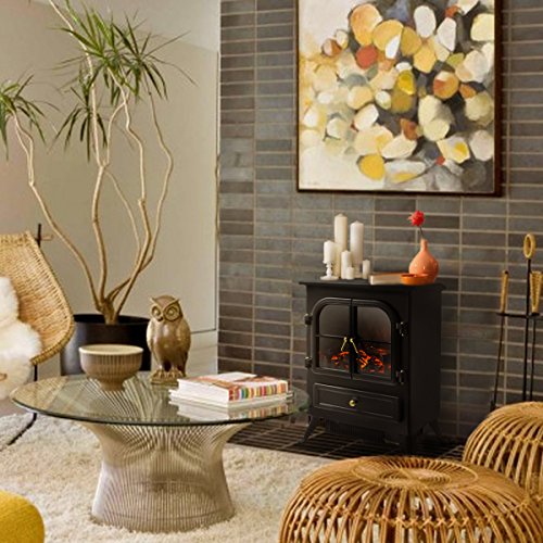 XtremepowerUS Standing Electric 1500W Fireplace Heater Fire Stove Flame Wood Log Decorate