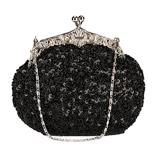 Chicastic Fully Sequined Mesh Beaded Antique Style Formal Cocktail Clutch- Black