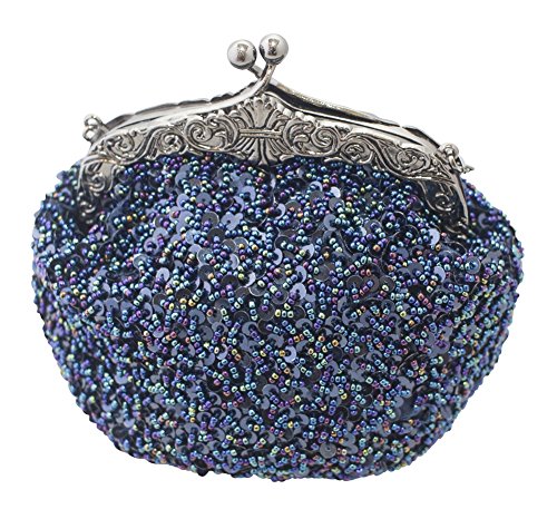 Chicastic Fully Sequined Mesh Beaded Antique Style Formal Cocktail Clutch - Blue