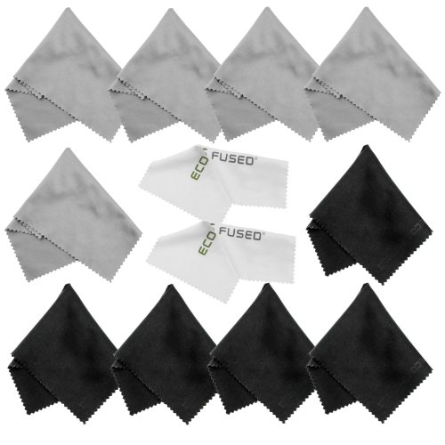 Eco-Fused Microfiber Cleaning Cloths - 12 Pack - for Cleaning Glasses, Spectacles, Camera Lenses, iPad, Tablets, Phones, iPhone, Android Phones, Laptops, LCD Screens and Other Delicate Surfaces