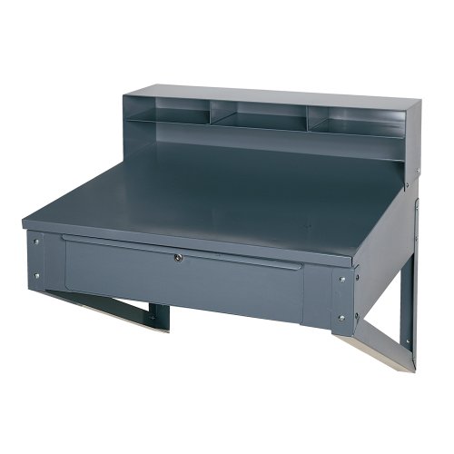 Edsal 650 Steel Wall Mounted Shop Desk with 5 Top and Drawer, 34" Width x 32" Height x 30" Depth, Gray