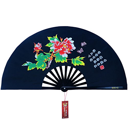 Shan Ren Sports Wushu Tai Chi Kung Fu Peony Flower Bamboo Fan Tai Chi Shaolin Chinese Fans 33cm Bamboo Rib Black