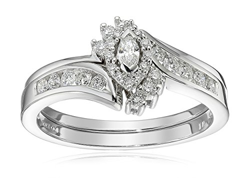 10k White Gold Marquise and Round Diamond Bypass Ring with Interlocking Band Bridal Set (0.33 cttw I-J Color, I2 Clarity)