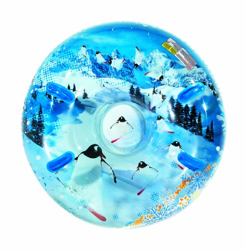 Aqua Leisure Uncle Bob's Winter Inflatable Round Air Penguin Snow Tube Sled for 2 (Two) Riders on Sledding Hill, Fast yet Safe, with 4 (Four) Big Durable Grip Handles and Repair Kit, 48"