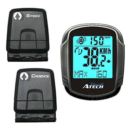 ATECH MCX235 Double Wireless Cycle Computer Cyclometer with EL Backlight, Odometer, Cadence, Speedometer, Bike 1 & 2 Option