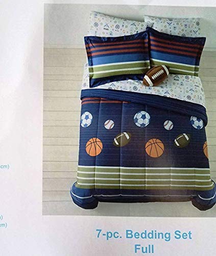 Kids Bedding MVP Sports Boys Baseball, Basketball, Football Full Comforter Set (7 Piece Bag)
