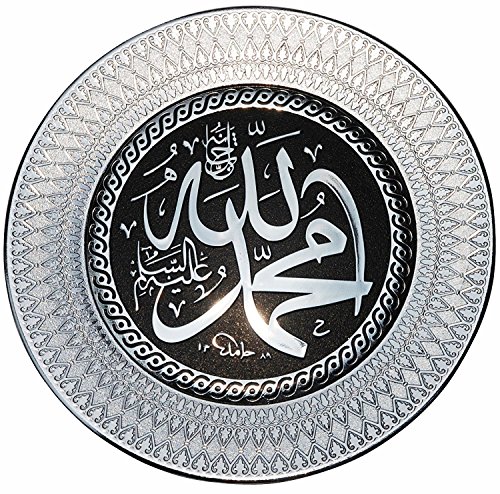 Stunning Silver Molded 8 1/4-inch Allah Muhammad Decorative Display Plate With Stand - Islamic Decoration