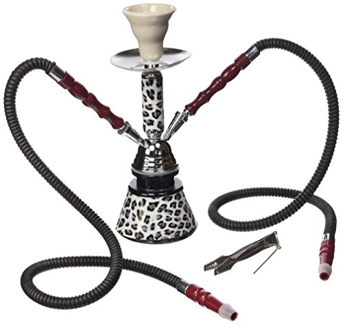 GSTAR Premium Series: 11" 2 Hose Hookah Complete Set - Cheetah Leopard Tiger Animal Skin Art w/Optional Carrying Case - (White Snow Leopard)