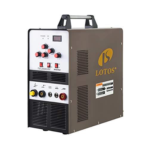Lotos TIG200ACDC 200A AC/DC Aluminum Tig Welder with DC Stick/Arc Welder, Square Wave Inverter with Foot Pedal and Argon Regulator 110/220V Dual Voltage Brown