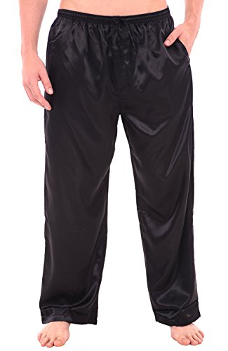 Alexander Del Rossa Men's Satin Pajama Pants, Long Pj Bottoms, Large Black (A0757BLKLG)