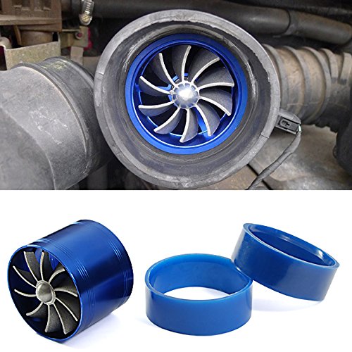 Universal Fit Brand New Blue Single Turbo Turbine Charger Cool Air Intake Fuel Gas Saver Fan Aluminum