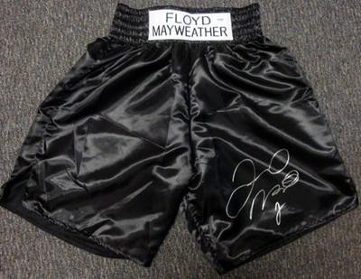 Floyd Mayweather, Jr. Autographed Signed Black Boxing Trunks In Silver - PSA/DNA Certified - Autographed Boxing Robes and Trunks