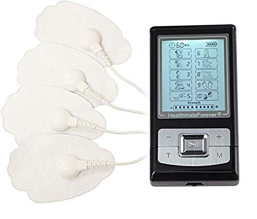 Portable Unit Handheld Palm Plus Digital 10 Modes Machine Pain Relief Electrotherapy NK10GL (Black) +2 Extra 4in1 Electrodes wire +4 snap on pads FDA cleared OTC HealthmateForever